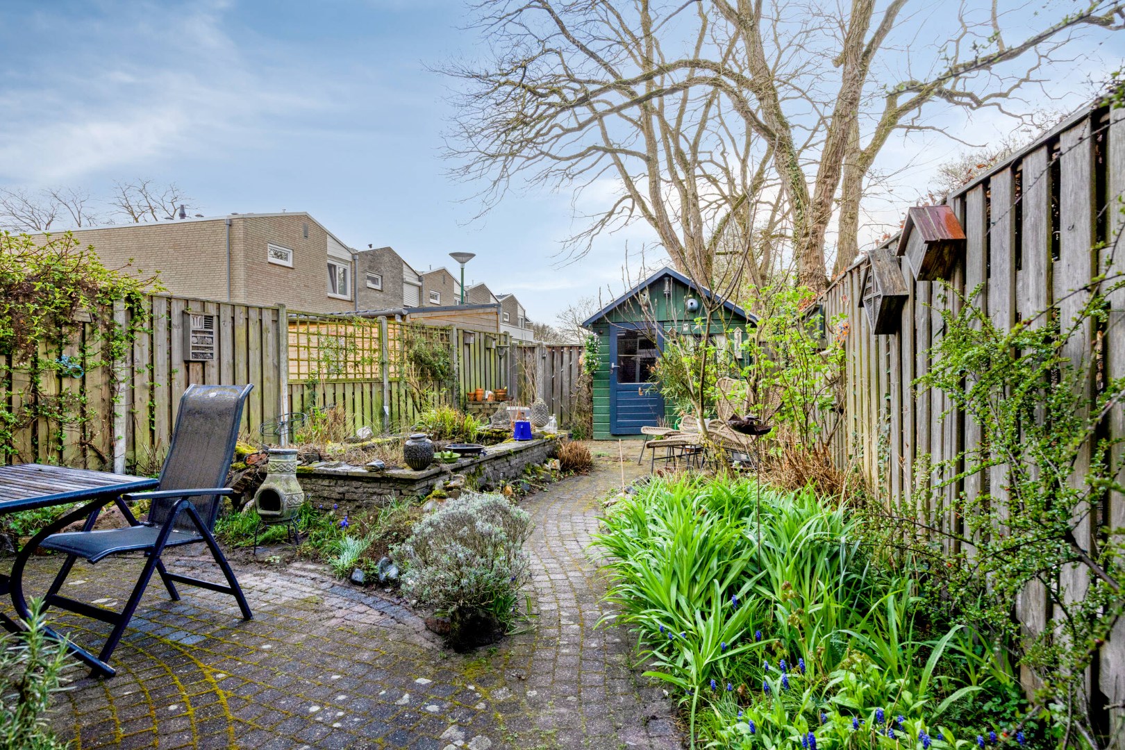 De tuin is gelegen op het westen, waardoor je heerlijk van de avondzon kunt genieten op het terras. Daarnaast is er ook nog een garage aanwezig, waar je bijvoorbeeld je auto of fietsen kunt stallen.