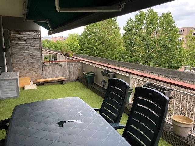 The apartment has a beautiful roof terrace at the front and a large balcony at the rear, which can rightly be called an extension of the apartment. Only the apartments on the 1st floor (1st floor) have such an exceptional roof terrace. And that right in the center of Eindhoven!! (Elzent). From the rear balcony (west) there is a view over "De Elzent" and where the setting sun can be seen .. .