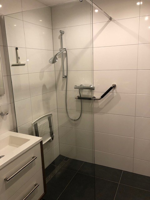 De luxe badkamer heeft een moderne uitstraling en is voorzien van een luxe wasmeubel met mengkraan en softclose kasten, er is een grote inloop douche met diversen luxe handgrepen en voorzien van een glaswand. Tevens is er een designradiator.