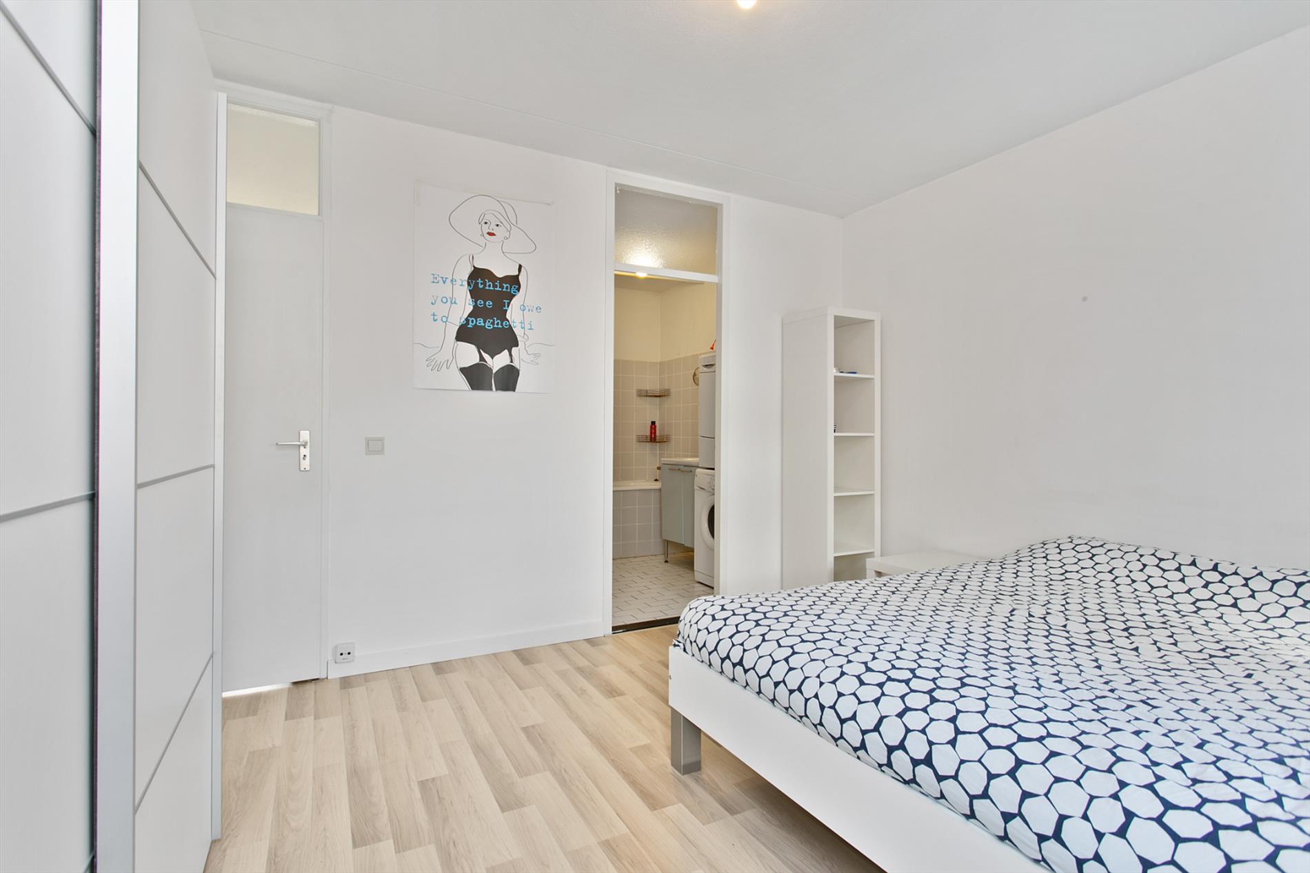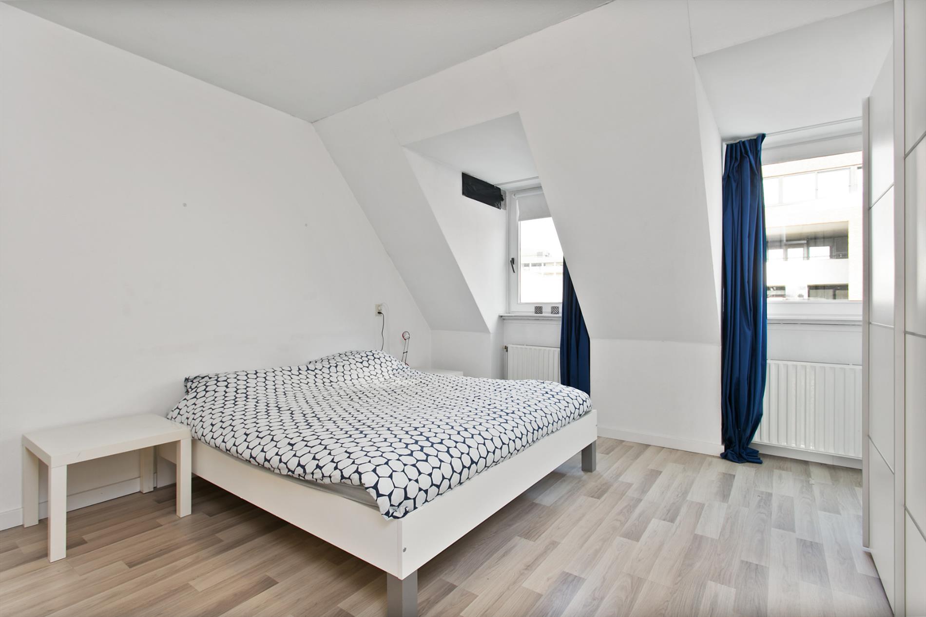 De zeer riante slaapkamer is voorzien van twee dakkapellen en een mooie laminaatvloer en kijkt uit over de Willemstraat. Vanuit de slaapkamer komt u in de lichte, deels betegelde badkamer voorzien van een ligbad met douchecombinatie met thermostaat kraan, wastafel met meubel, radiator en aansluiting wasapparatuur.