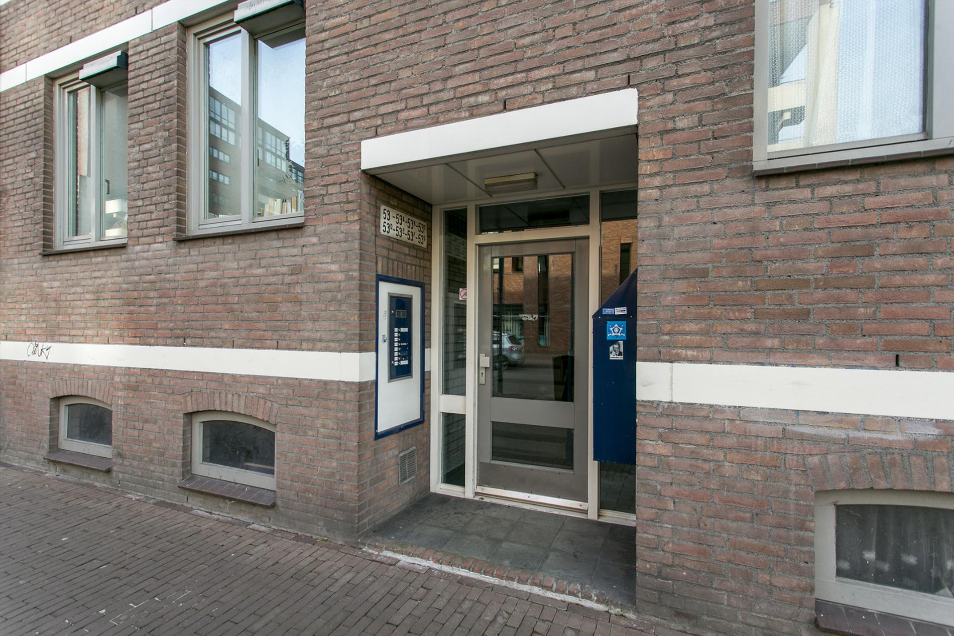 Centrale entree met bellentableau, intercom en brievenbussen. Hal met trapopgang.