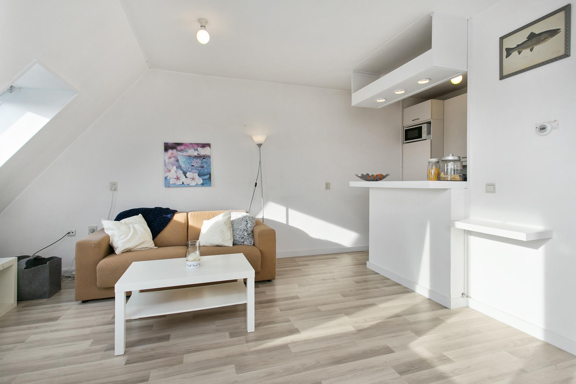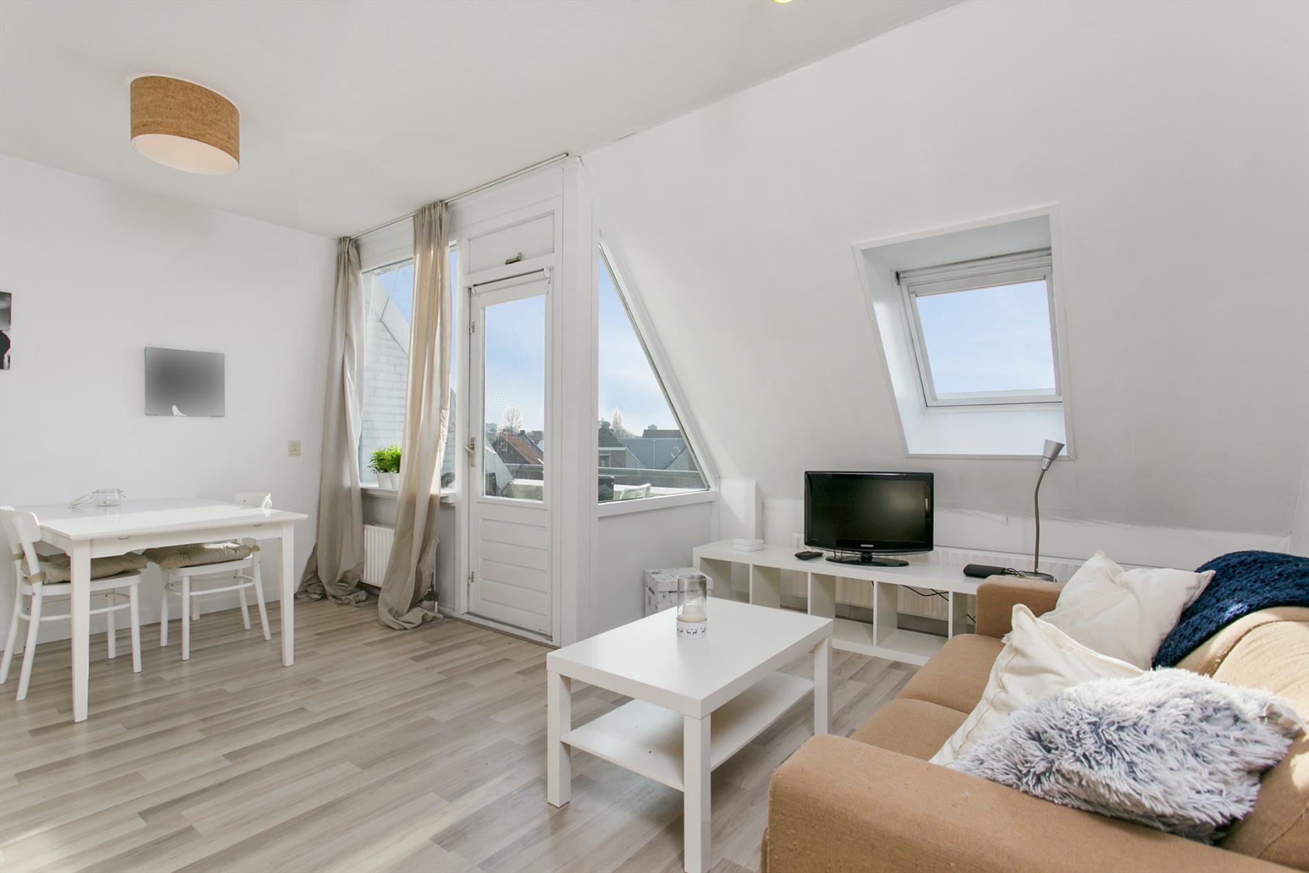 Speelse woonkamer met veel lichtinval. Vanuit de woonkamer heeft u toegang tot het balkon, welke gelegen is op het zuiden. Vanuit het balkon heeft u een fraai uitzicht over ‘de Bergen’.