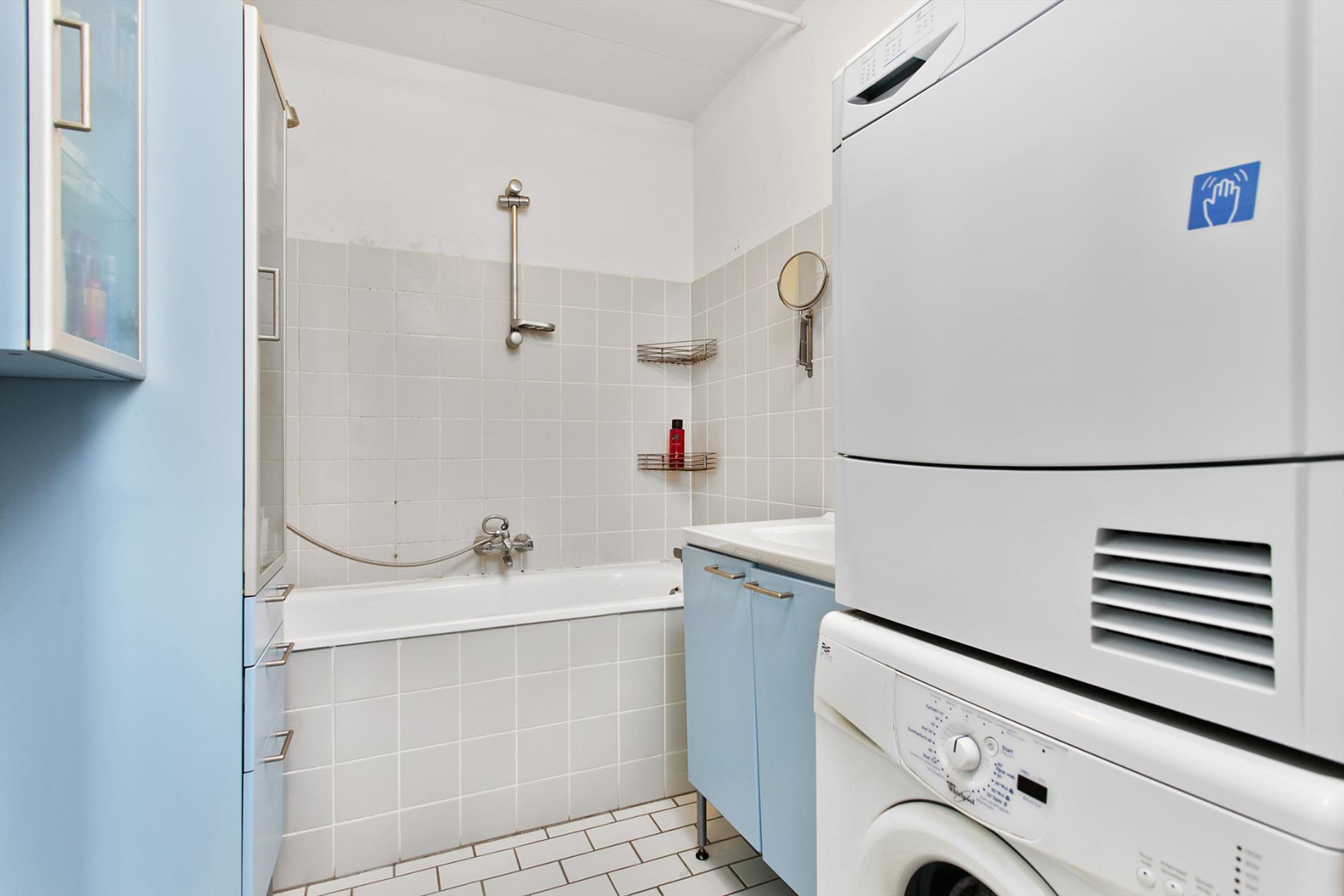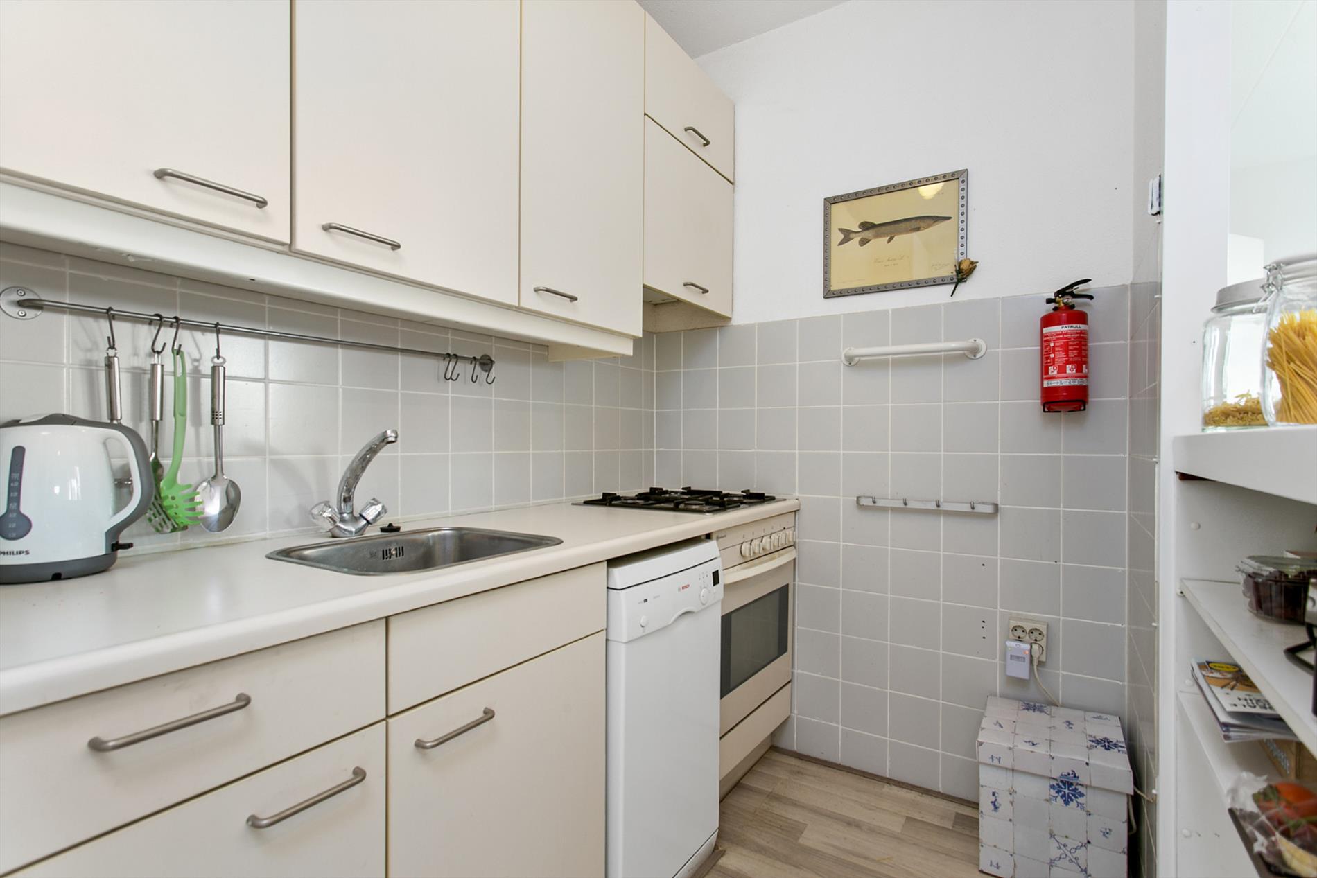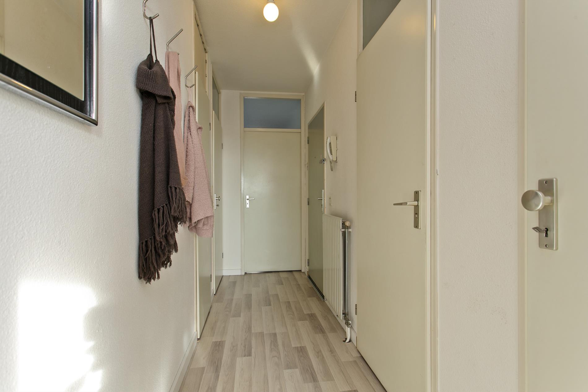 In de hal van het appartement treft u twee praktische bergkasten aan, een CV-ruimte (2012) en een deels betegeld toilet met fontein.