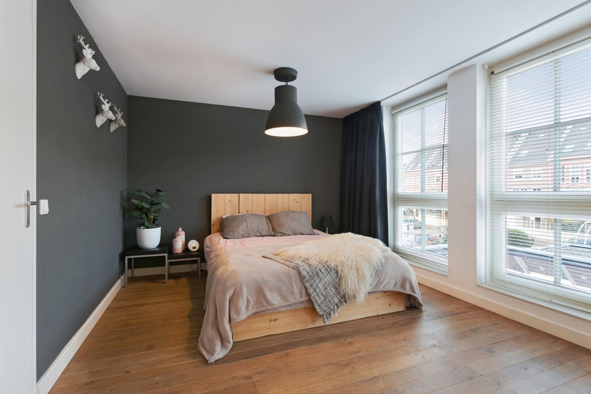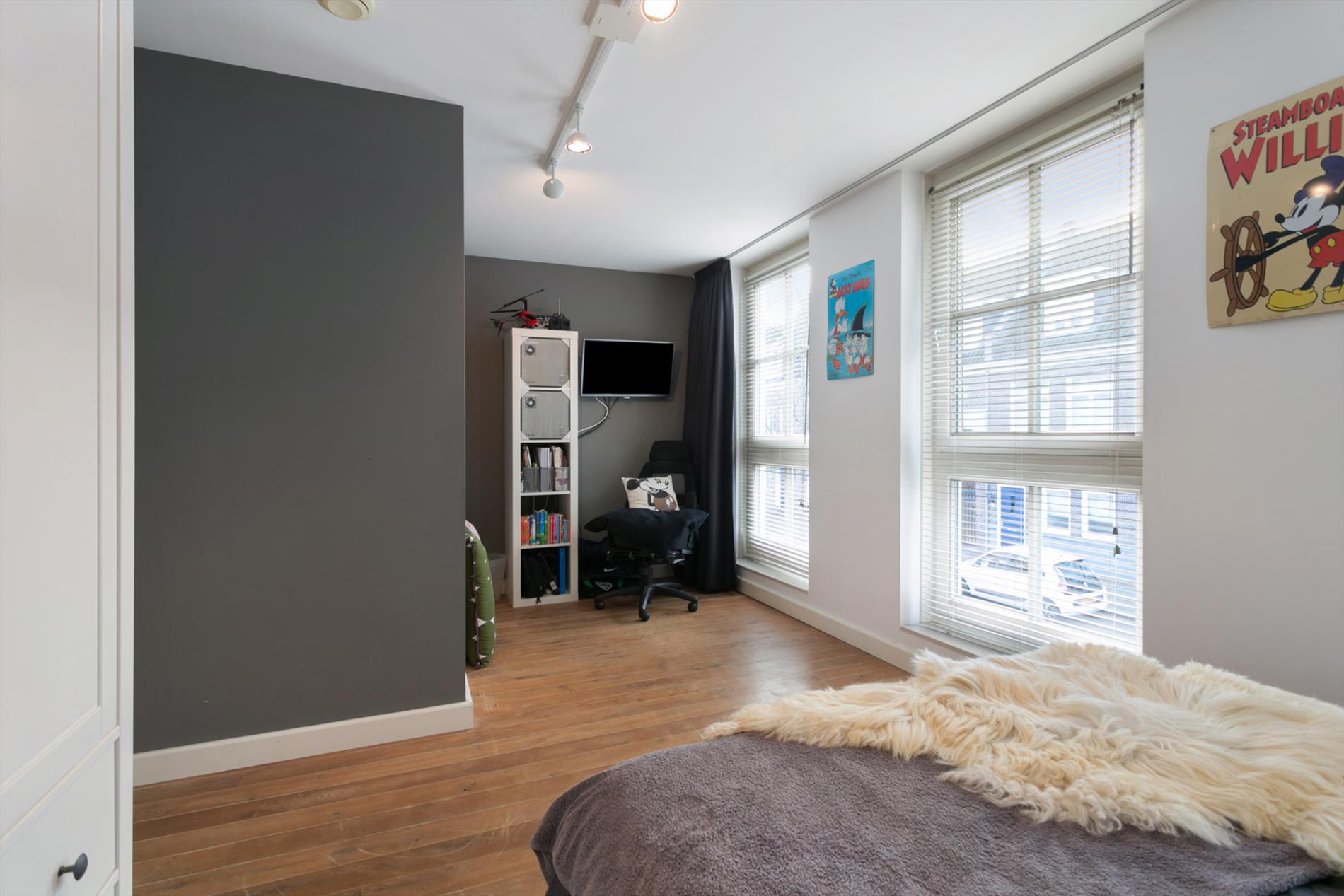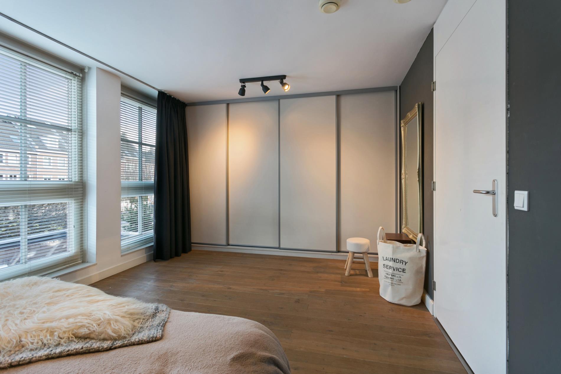 Slaapkamer 1: ruime slaapkamer van 16 m2 aan de voorzijde van de woning gelegen. Deze slaapkamer geniet veel lichtinval door de 3 ramen in de voorgevel. Slaapkamer 2: ruime (ouder)slaapkamer van 19 m2 aan achterzijde van de woning gelegen. Deze slaapkamer heeft een inbouwkast over de volle breedte. De slaapkamers en overloop zijn voorzien van een mooie eikenhouten vloer.
