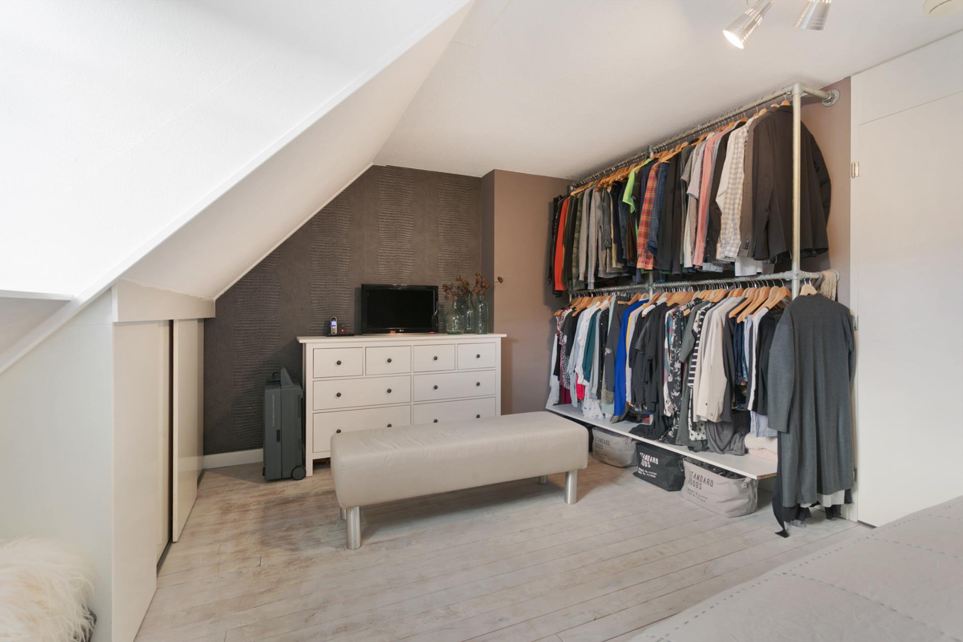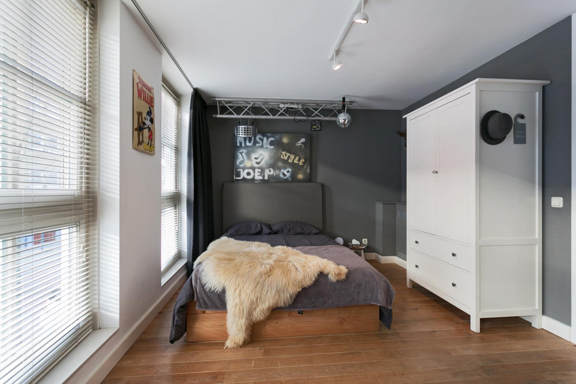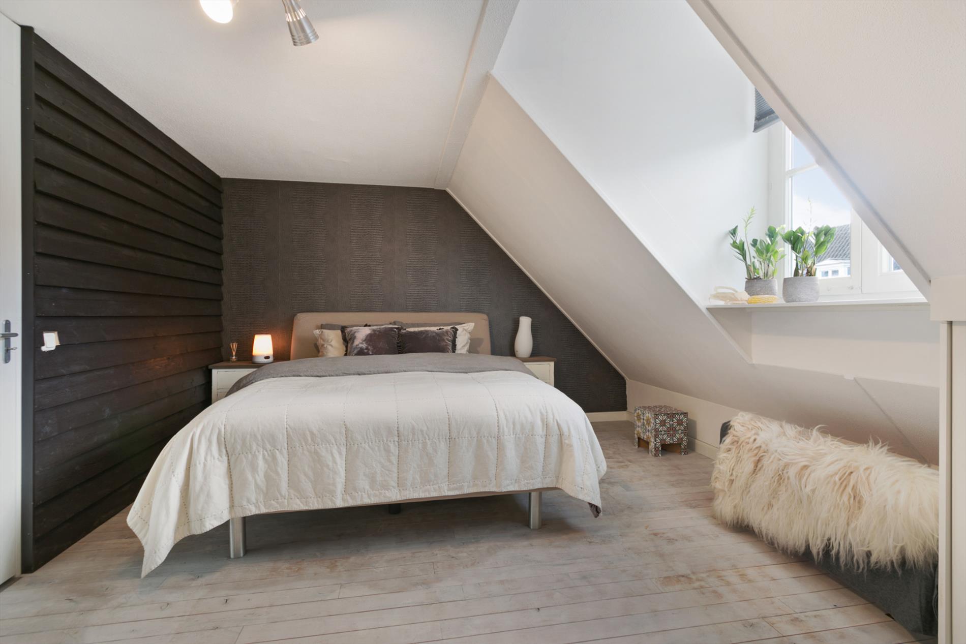 Slaapkamer 1: ruime slaapkamer van 16 m2 aan de voorzijde van de woning gelegen. Deze slaapkamer geniet veel lichtinval door de 3 ramen in de voorgevel. Slaapkamer 2: ruime (ouder)slaapkamer van 19 m2 aan achterzijde van de woning gelegen. Deze slaapkamer heeft een inbouwkast over de volle breedte. De slaapkamers en overloop zijn voorzien van een mooie eikenhouten vloer.