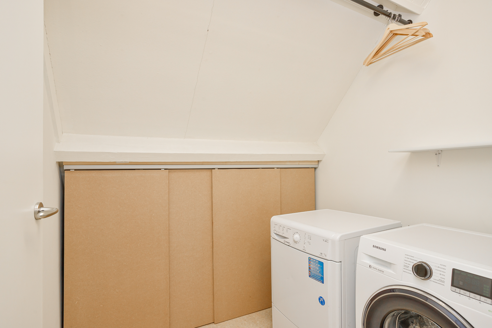 Middels vaste trap naar zolderverdieping met complete 4e slaapkamer en separate royale bergruimte.