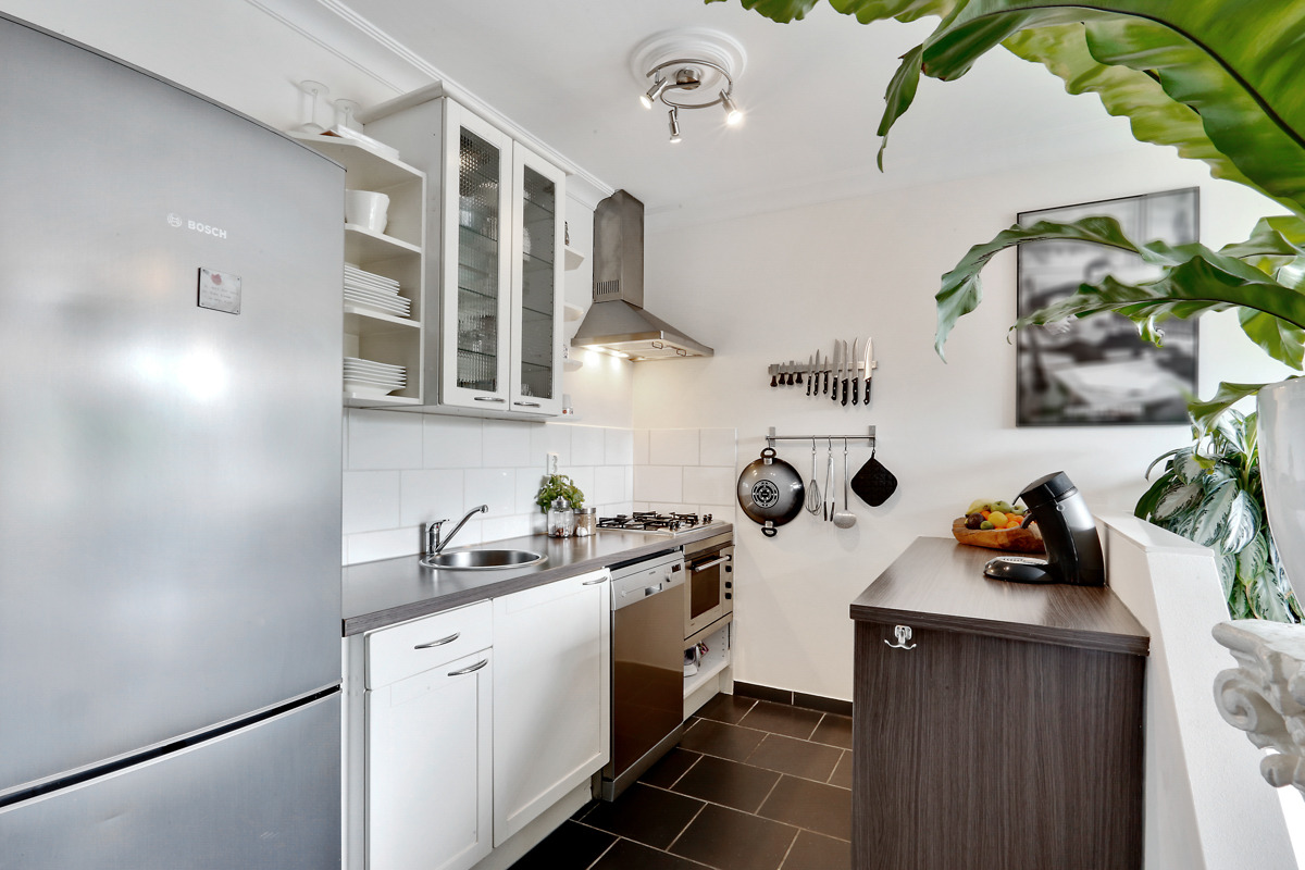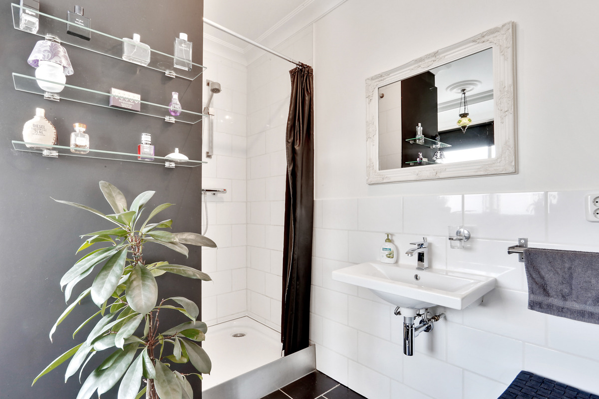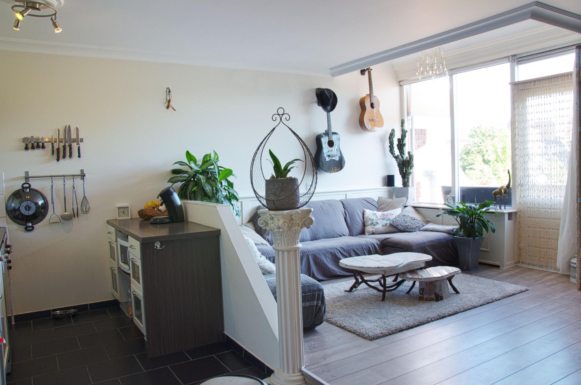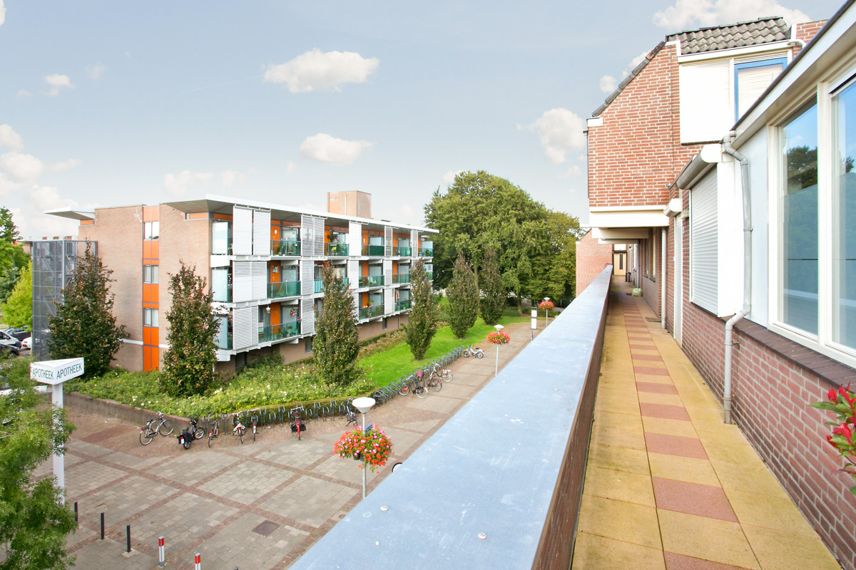 Ruime L-vormige woonkamer met verhoogd gedeelte en toegang tot het ruime balkon welke doorloopt over de gehele breedte van het appartement. Het balkon is op de zonzijde gelegen. Het appartement heeft strak gestucte wanden en plafonds en is verder afgewerkt met sierlijsten. De nette keuken met voldoende boven- en onderkasten is vernieuwd in 2010 en voorzien van een tegelvloer, gaskookplaat, roestvrijstalen afzuigschouw, spoelbak met mengkraan en combi oven-magnetron. De standaard binnendeuren zijn vervangen door binnendeuren die van sloophout zijn gemaakt, een erg leuk detail. De slaapkamer aan de galerijzijde biedt toegang tot de open badkamer. De badkamer is in 2010 volledig vernieuwd en voorzien van net tegelwerk in neutrale kleuren, verder zijn er een wastafel en douche met thermostaatkraan aanwezig.